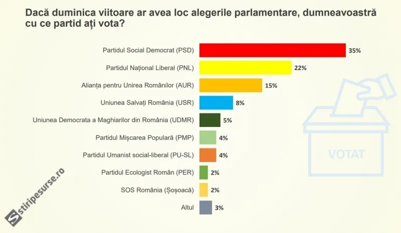Sondaj CURS: PSD și PNL își păstrează primele locuri în intenția de vot