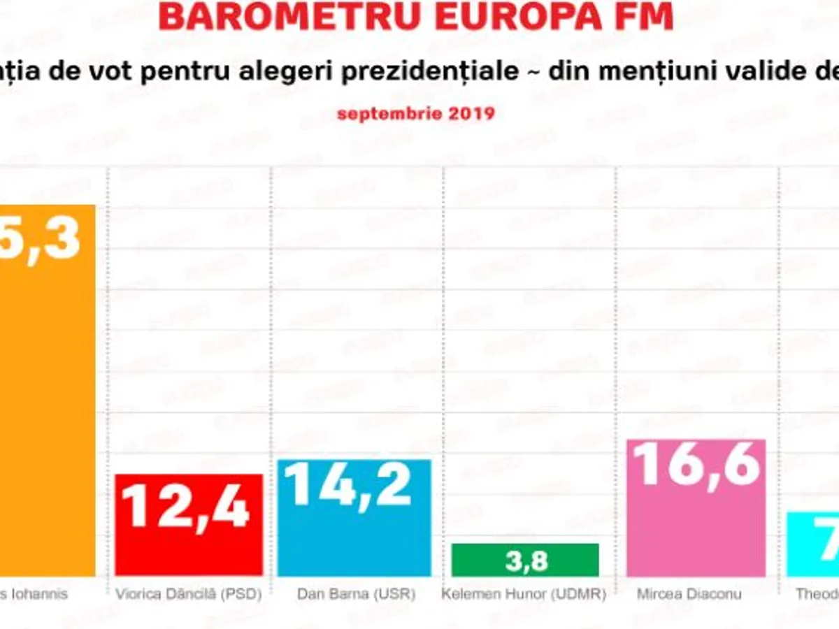 Al treilea clasat, potrivit Barometrului Europa FM, este Dan Barna care scade față de luna august la 14, 2%.