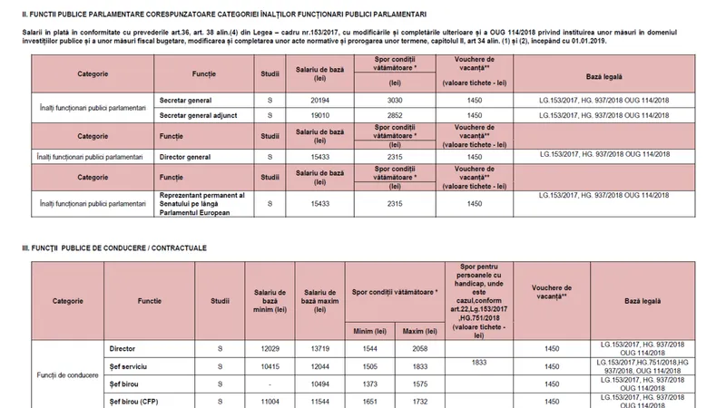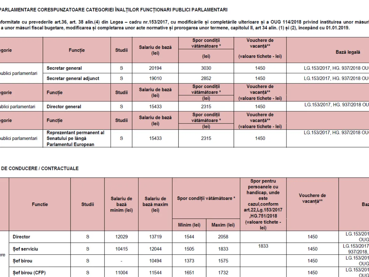 Secretarul general-adjunct primește un spor de condiții vătămătoare de 2.852 de lei. În 2017, sporul era de patru ori mai mic, doar 650 de lei.