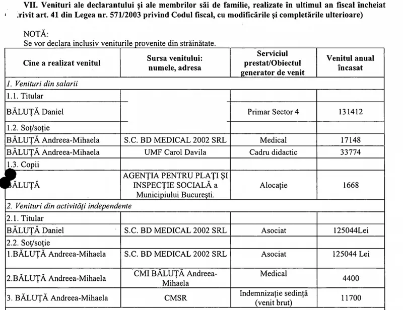 Primarul Băluță a încasat ca edil 131.412 lei/an, adică aproape 11.000 de lei/lună, iar soția sa încasează, ca medic stomatolog și cadru didactic, aproape 51.000 de lei/an. Ca asociat la BD Medical 2002 SRL, încasează încă 125.044 lei.