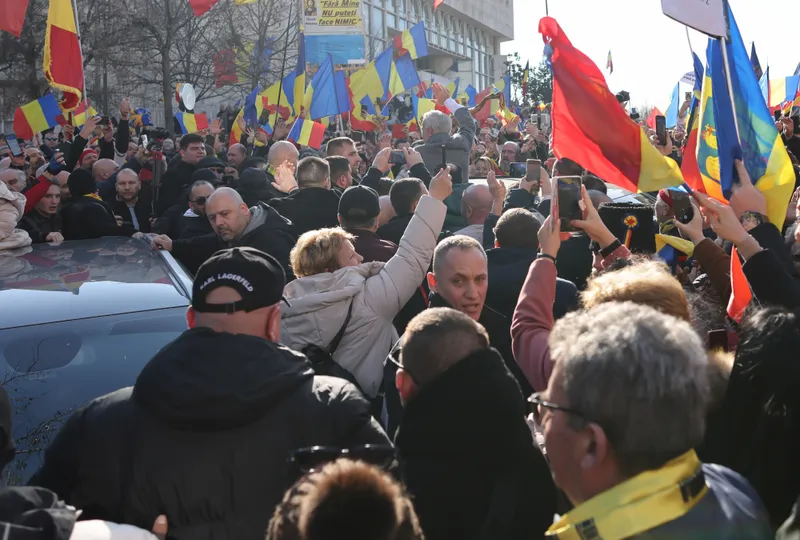 UPDATE 14:00 - Călin Georgescu are apucături de dictator. S-a urcat pe mașină și a salutat mulțimea care se îmbulzea într-un mod șocant să-l vadă pe cel care vrea să aducă în România "înțelepciunea rusească".