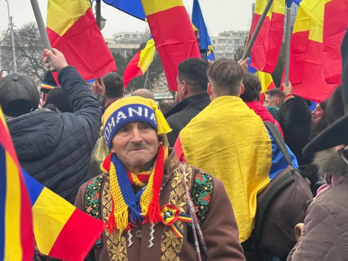 "Trăim o revoluție de catifea. Dictatorul Klaus Iohannis va fugi de la Cotroceni. Românii vor să refacem România Mare. Sunt steaguri cu harta României Mari aici ", spune un alt susținător al lui Călin Georgescu la Realitatea Plus.