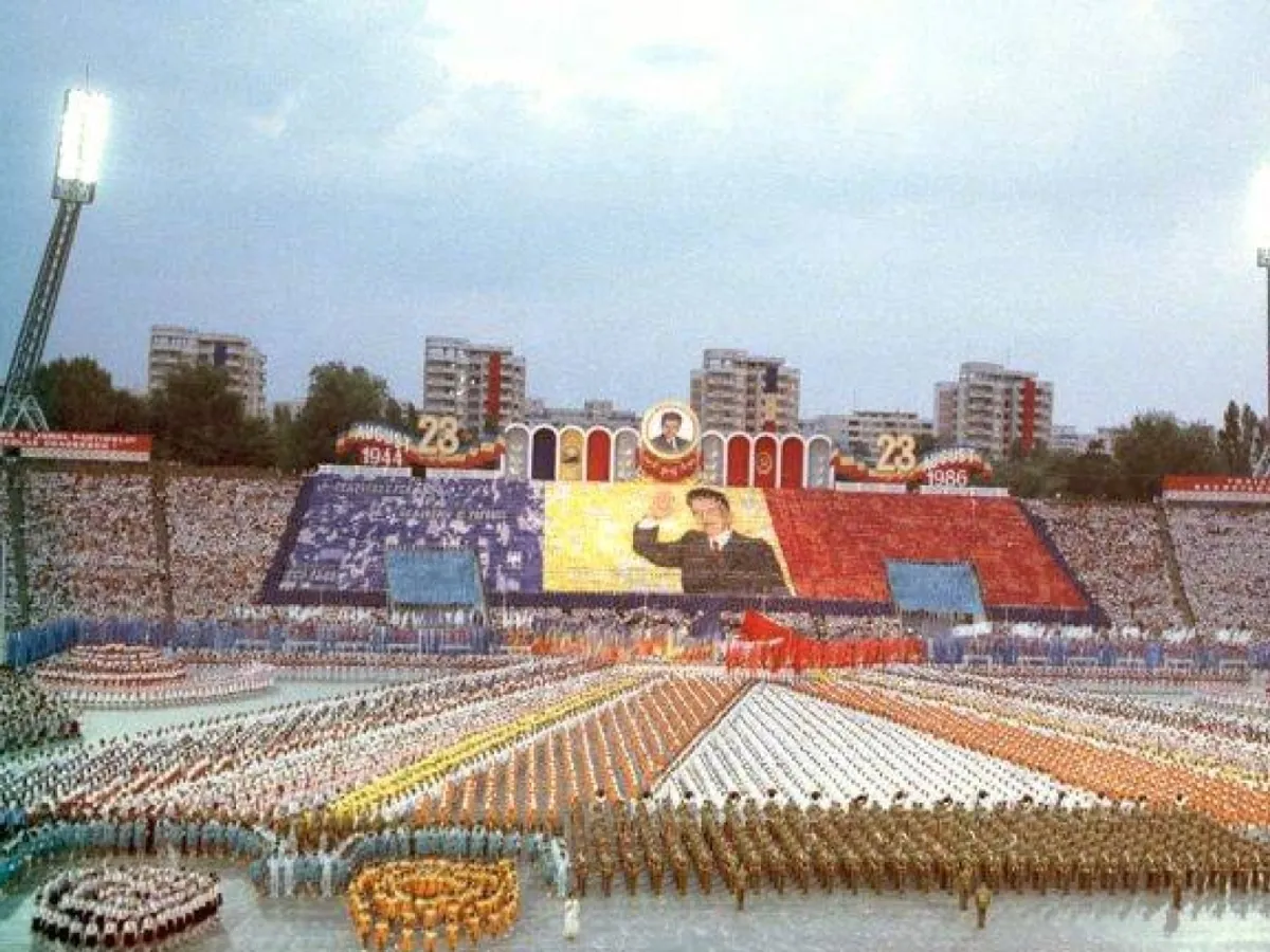 Pe Stadionul 23 august se țineau manifestații omagiale de dimensiuni megalomanice, similare cu ce se întâmplă astăzi în Coreea de Nord. Zeci de mii de oameni participau la spectacole grandioase, cu coregrafii complexe şi foarte complicate. După paradă, oamenii ieșeau cu mic cu mare la mici și bere.