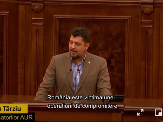 Senatorul AUR Claudiu Târziu preia narațiunea promovată de Active News, susținând că România este „victima unei operațiuni de compromitere (...) care vrea să transforme statul român într-un stat xenofob, rasist şi antisemit”.