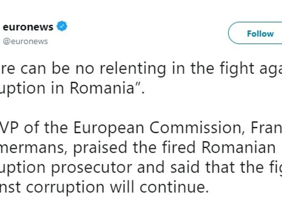 „Nu pot exista pași înapoi în ceea ce privește lupta împotriva corupției. Nu poate exista nicio amnistie pentru politicienii corupți care au fost condamnați în justiție”, a declarat Frans Timmermans, într-o declarație distribuită pe Twitter de Euronews.