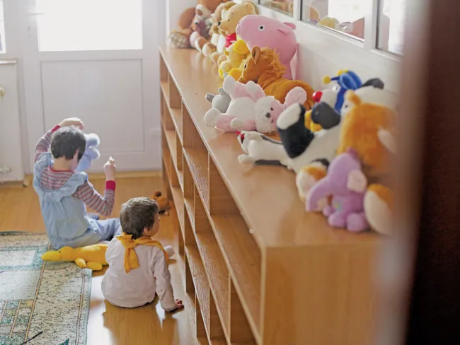 Micutii din centrul de plasament Romanita se alina cu jucarii. Foto: Inquam Photos - Octav Ganea