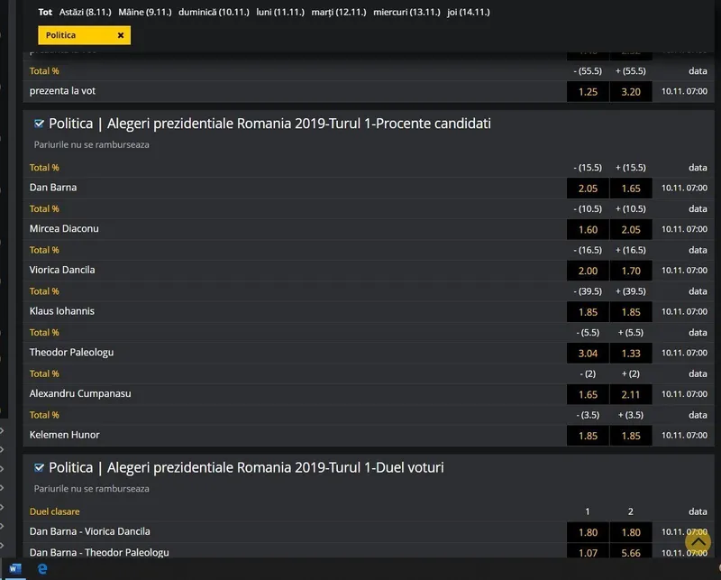 Casele de pariuri au stabilit la ce procentaj se află fiecare candidat și oferă posibilitatea de a paria pe ei.
