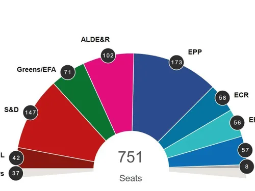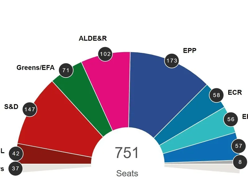 Alianţa Socialiştilor şi Democraţilor (S&D) va fi al doilea grup din Parlamentul European, cu 150 de mandate, în timp ce liberalii din ALDE ar urma să aibă 107 locuri, din totalul de 751.
