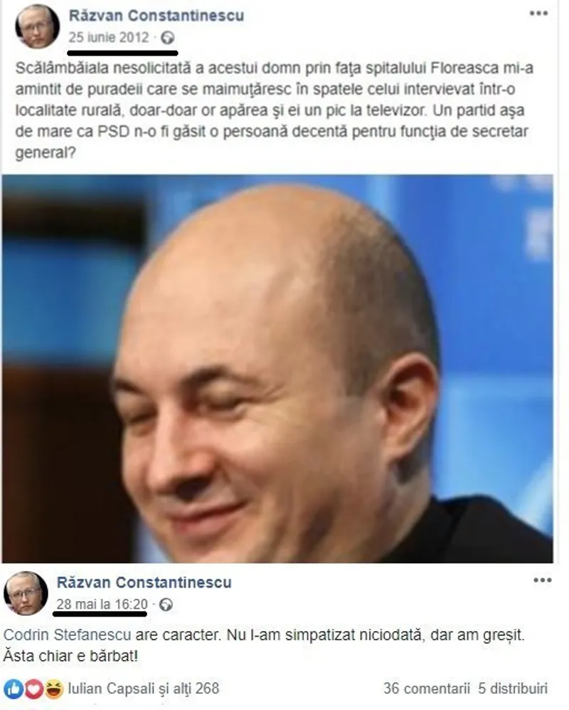 "Să te bucuri că un ins intră la pușcărie și să faci glume pe tema asta denotă o calitate umană de ultimă speță." - acesta este laitmotivul lui Constantinescu în contexul încarcerării lui Dragnea. A tot repetat că nu este omenește să dai în cei căzuți și că, dacă el ar fi făcut așa ceva, tatăl său "l-ar fi călcat în picioare". Doctorul din Iași are memoria cam scurtă: în urmă cu câțiva ani, a făcut mișto de greutatea fostului președinte al Consiliului Județean Constanța, Nicușor Constantinescu, aflat într-o situație similară:
