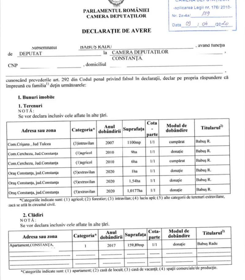 Viceliderul deputaților PSD a primit ca donație un apartament de 160 mp și 3,5 hectare în Constanța
