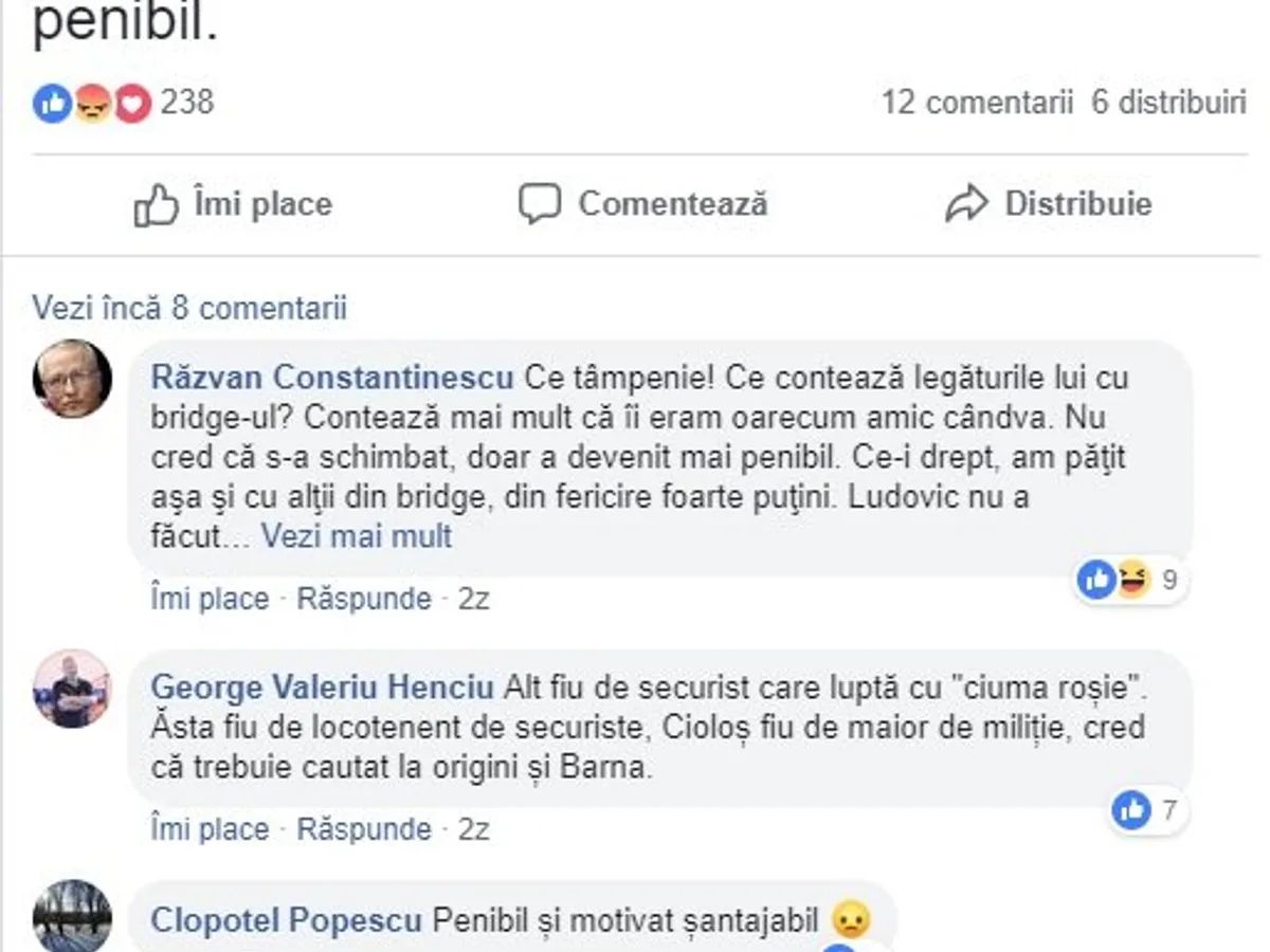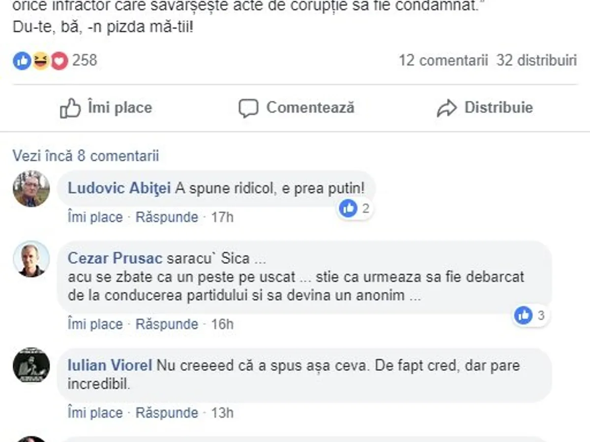 Nici unul dintre cei care au comentat postările nu a condamnat tonul folosit, ba dimpotrivă: „Cred că jignești demenții. Ăsta nici măcar dement nu poate fi numit, iar ticălos e mult prea puțin..." (Filip Pîrlog), "Pardon de «mă-tii» că restu-i bine spus!!!" (Maria Constantinescu), "și de asta va prețuiesc! I-ați arătat lui Ludovique calea cea dreaptă!" (Sorin Mester).