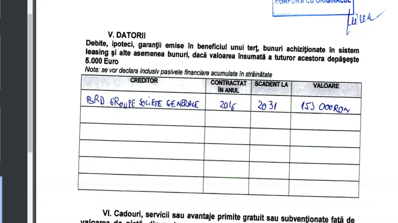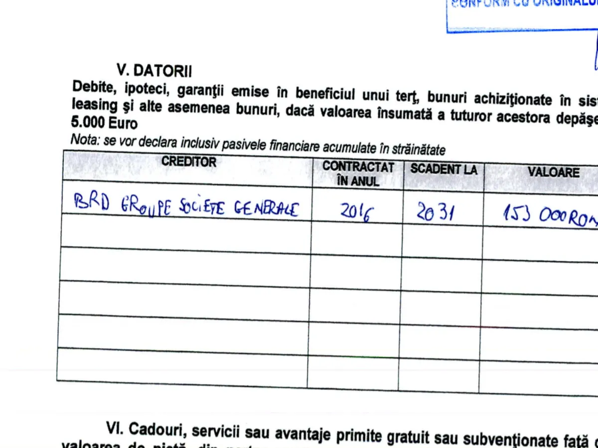 Are un autoturism Dacia Duster și tablouri de 6.500 euro. În conturi menționează 20.000 de euro.