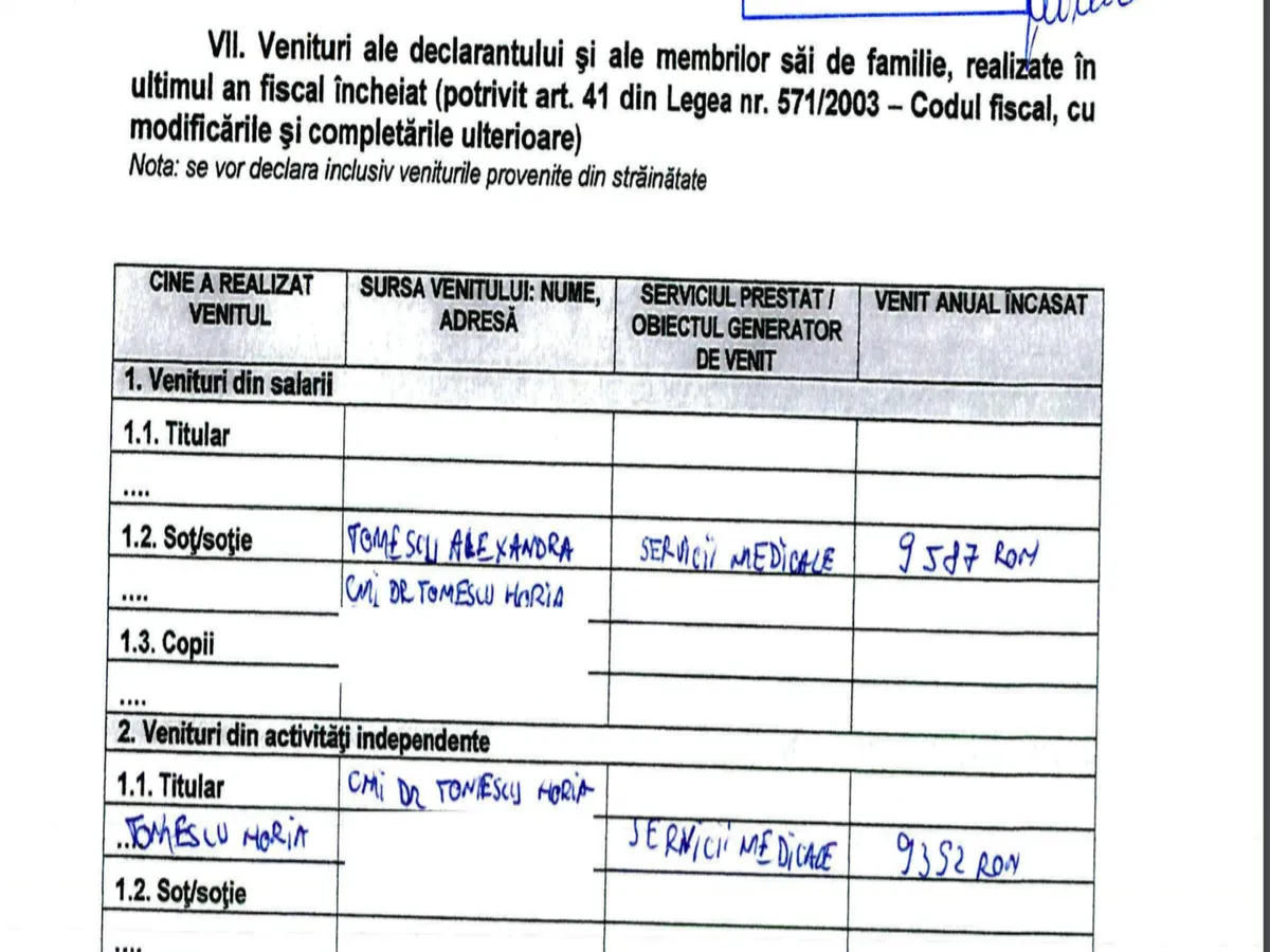 În anul 2019, susține că a câștigat 9.352 de lei din servicii medicale, în medie 770 lei/lună.