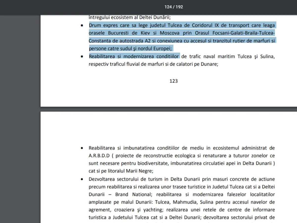 „Drum Expres care sa lege judetul Tulcea de Coridorul IX de transport care leagă orașele București de Kiev și Moscova prin orașul Focșani – Galați – Brăila – Tulcea - Constanța de autostrada A2 și conexiunea cu accesul și tranzitul rutier de marfuri si persoane către sudul şi nordul Europei”.