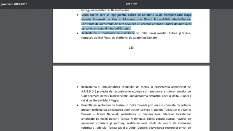 Astfel, la capitolul „Turism, IMM și mediul de afaceri”, fostul guvern Ponta a menționat o propunere pentru a îmbunătăți „Turismul în Delta Dunării”. Iar aici Ponta a propus, printre altele, realizarea unui: