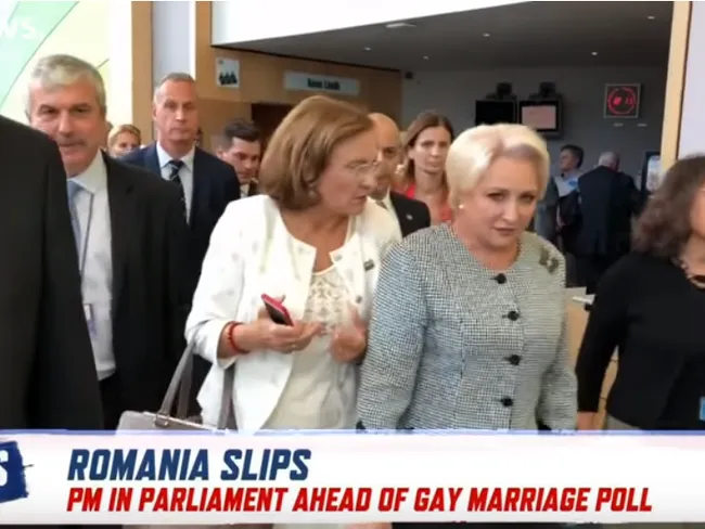„Doamnă prim-ministru, ce ați discutat astăzi cu Grupul S&D? Aveți vreo reacție? Doamnă prim-ministru? Doamnă prim-ministru? Veți continua cu referendumul? Putem obține un răspuns scurt, vă rog? Un comentariu legat de referendum? Ce a spus Grupul S&D despre căsătoria dintre homosexuali?”, au fost întrebările jurnalistului.
