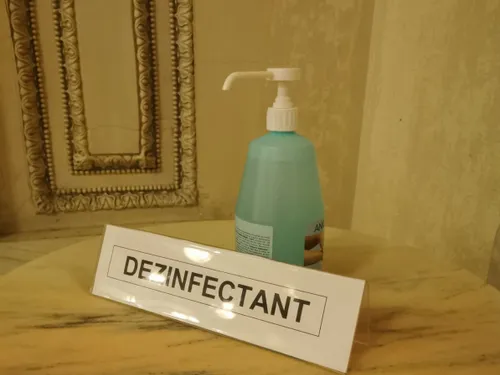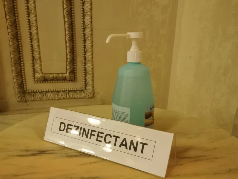 Numai că, de teamă să nu dispară dezinfectantul pentru mâini, angajații de la Camera Deputaților au lipit sticluțele de mesele de marmură.
