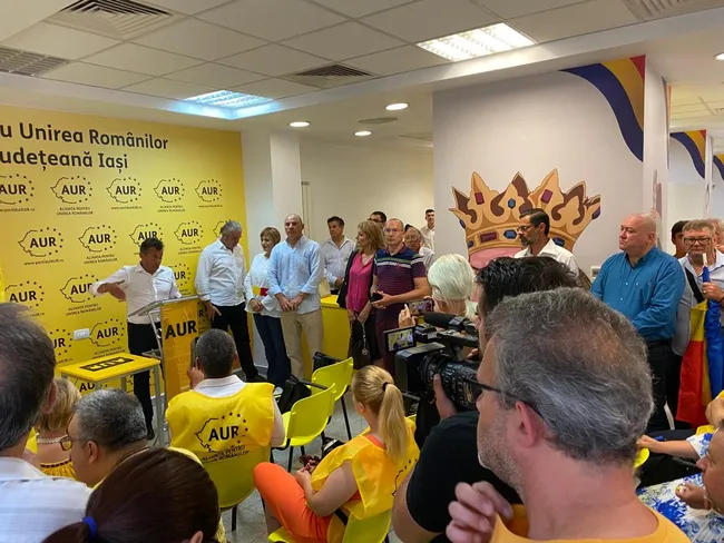 George Simion nu a mai ajuns la sediul AUR din Iași care ar fi trebuit să fie sfințit în prezența lui. Președintele filialei Corneliu Ciucanu este plătit de Academia Română și este autorul unor cărți despre extrema dreaptă din România interbelică.