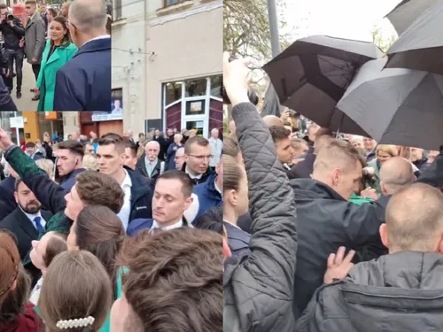 Președinta Ungariei a mers să vorbească cu un grup de români la Carei. SPP a deschis umbrelele