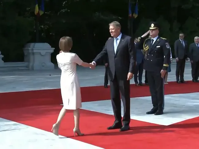 Preşedintele Republicii Moldova, Maia Sandu, a fost primită cu onoruri militare de preşedintele Klaus Iohannis, vineri, 29 iulie, la Palatul Cotroceni.
