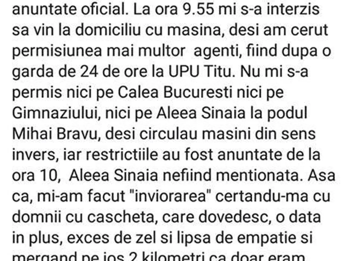 Relatarea unui medic din Târgoviște: după 24 de ore de gardă, miliția lui Carmen Dan și Dragnea i-a interzis să se întoarcă acasă cu mașina.