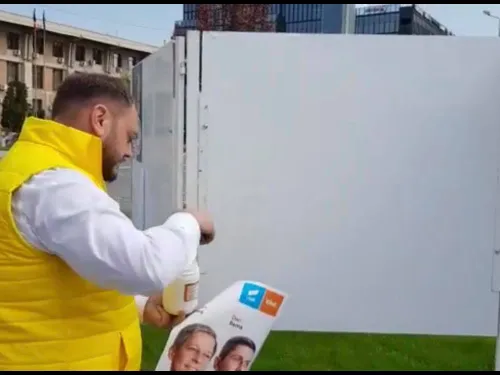 VIDEO Un consilier local PNL din Iași, filmat în timp ce lipea afișe electorale pentru USR-PLUS