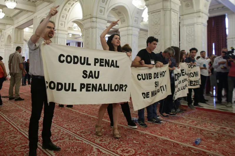Miercuri, la orele prânzului, mai mulți protestatari au manifestat la Palatul Parlamentului, avertizând puterea politică PSD-ALDE-UDMR că nu vor mai pleca din stradă dacă proiectul de modificare a Codului de procedură penală intră în vigoare.