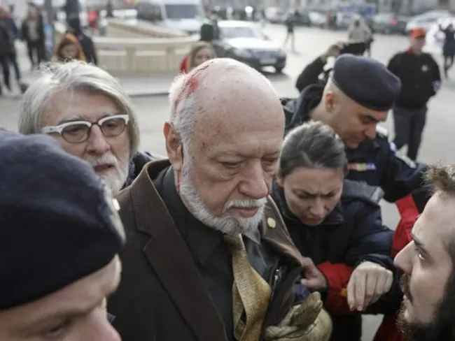 Citește și FOTO Gelu Voican Voiculescu, lovit cu o cârjă în cap, în Piața Universității