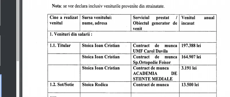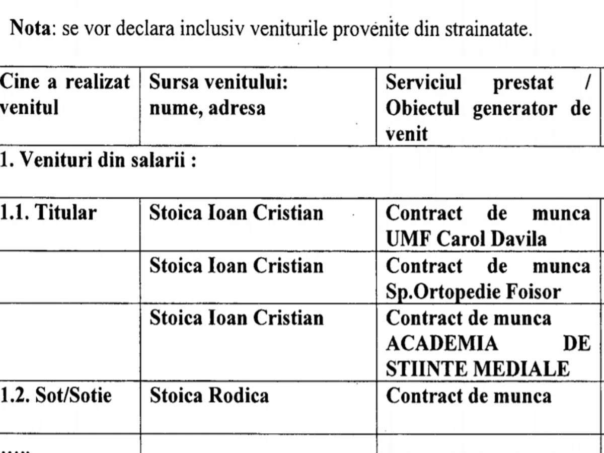 Potrivit ultimei sale declarații de avere, Ioan Stoica are trei surse de venit (pe anul 2019):