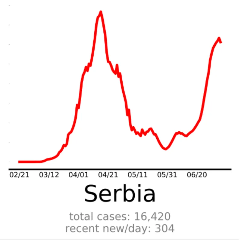 Situația din Serbia este extrem de gravă. Ea suferă una dintre cele mai grave reveniri a coronavirusului de pe continentul european. Rata crește vertiginos: de la doar 50 de infectări pe zi, în urmă cu o lună, țara balcanică înregistrează acum rate de 350 de persoane zilnic, spitalele din sudul țării colapsează, jumătate din guvern este infectată, iar, din weekend, capitala Belgrad a revenit la starea de urgență.