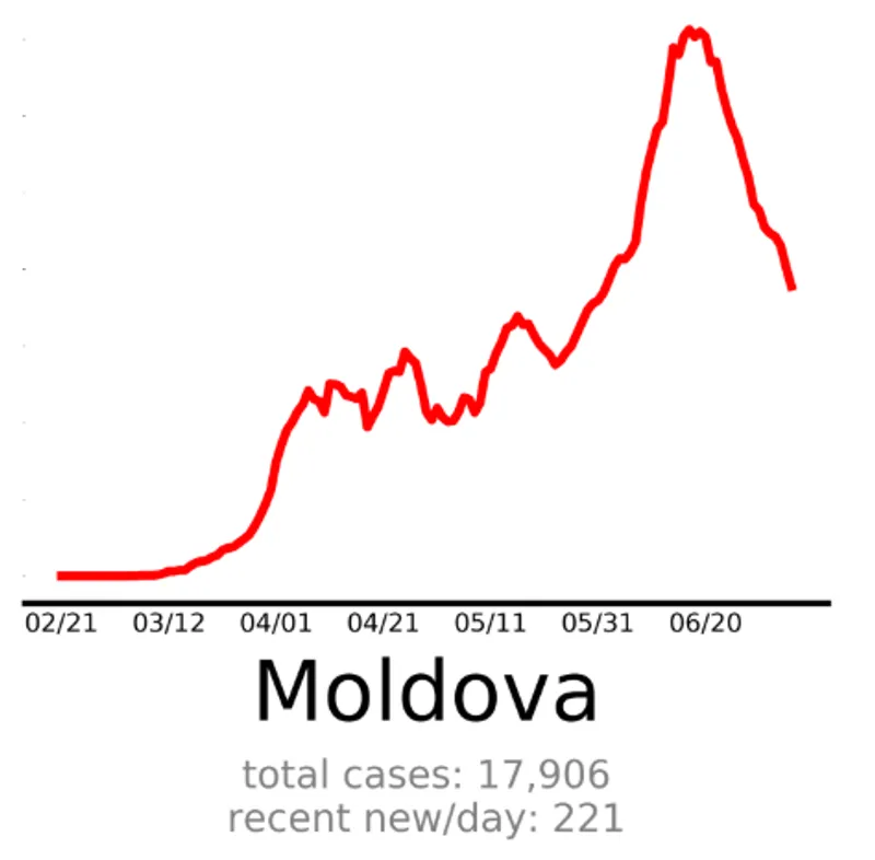Republica Moldova este și ea, din nefericire, un exemplu de stat ineficient în compaterea pandemiei. Guvernul controlat de președintele pro-rus Igor Dodon refuză să-și dea demisia, după ce s-a dovedit incapabil să protejeze sănătatea cetățenilor săi. Criza sanitare se suprapune cu o criză financiară de proporții, deoarece autoritățile au eșuat să acceseze împrumuturi externe.