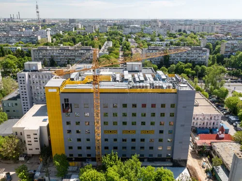 Zidurile sunt aproape gata. Noua clădire amplasată în curtea spitalului „Marie Curie” din București va fi terminată în vara anului 2022 sau cel târziu în toamnă. Se lucrează la finisajele interioare și deja se vede că spitalul va fi cu totul altfel decât ce s-a făcut până acum în sistemul public românesc.