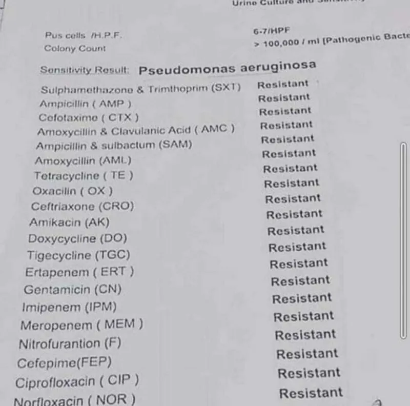 Un medic de familie din Sibiu a distribuit pe pagina de socializare o antibiogramă care arată o bacterie rezistentă la toate antibioticele.