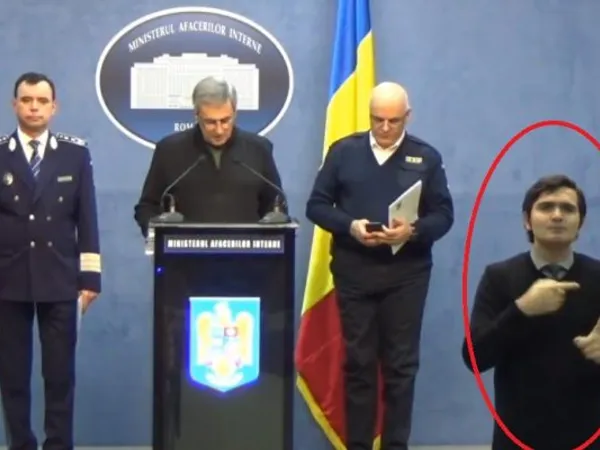 Anunțurile transmise în direct ale ministrului de Interne despre măsurile pentru combaterea răspândirii coronavirusului sunt traduse pentru persoanele fără auz de un tânăr, remarcat de majoritatea internauților mai ales după declarațiile de presă de sâmbăta trecută.