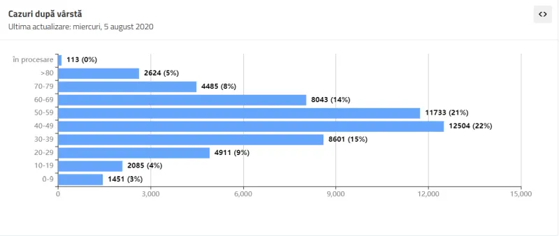 Dintre acestea, până pe 5 august, 28.584 s-au vindecat, iar 2.521 au decedat, potrivit portalului Date la Zi, realizat de organizația Code for Romania, în colaborare cu Guvernul României prin Autoritatea pentru Digitalizarea României.