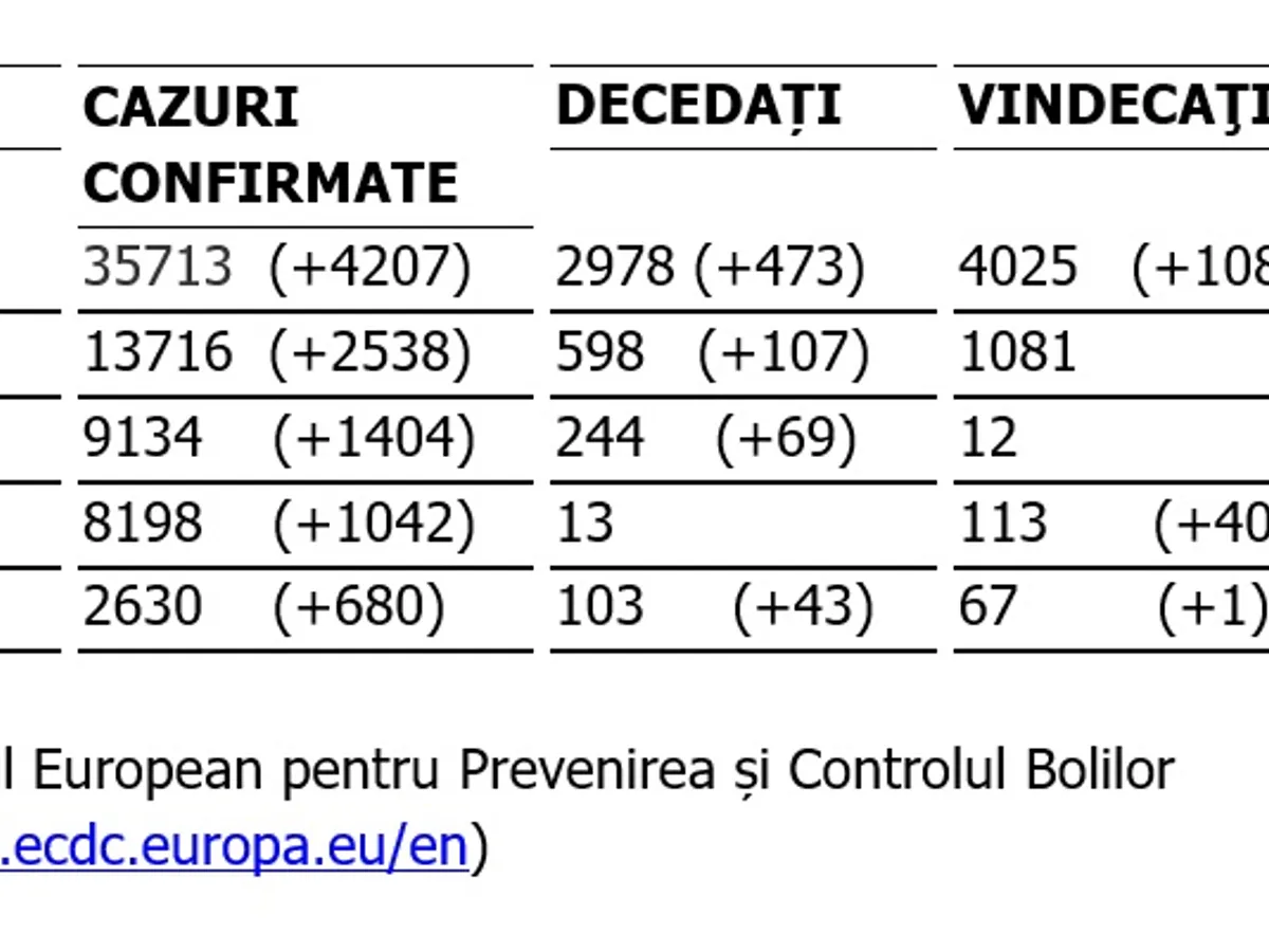 De asemenea, 31 de persoane au fost declarate vindecate și au fost externate: sunt 22 de persoane la Timișoara, opt la București și una în Iași.