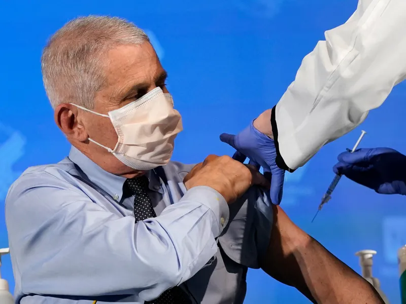 Fauci a fost inoculat împreună cu secretarul de la Sănătate și Servicii umane, Alex Azar, directorul Institutelor Naționale de Sănătate, Francis Collins, și alți angajați ai sănătății din prima linie ai Centrului Clinic NIH.