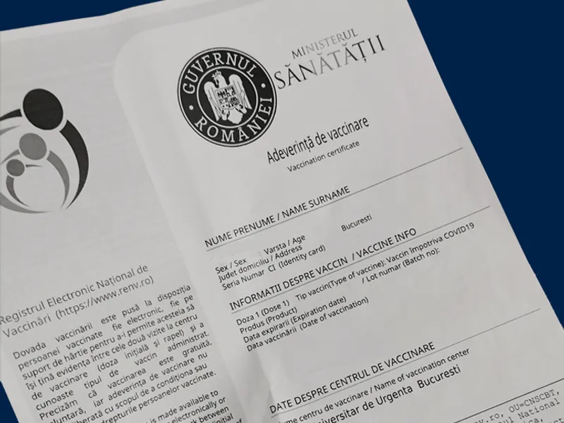 „Pentru ţara noastră, documentul oficial prin care se atestă vaccinarea anti SARS-CoV-2 este adeverinţa de vacinare, document care se eliberează pentru fiecare persoană vaccinată, în scris, de fiecare centru de vaccinare şi care poate fi descărcat şi electronic de pe site-ul: https://adulţi.renv.ro