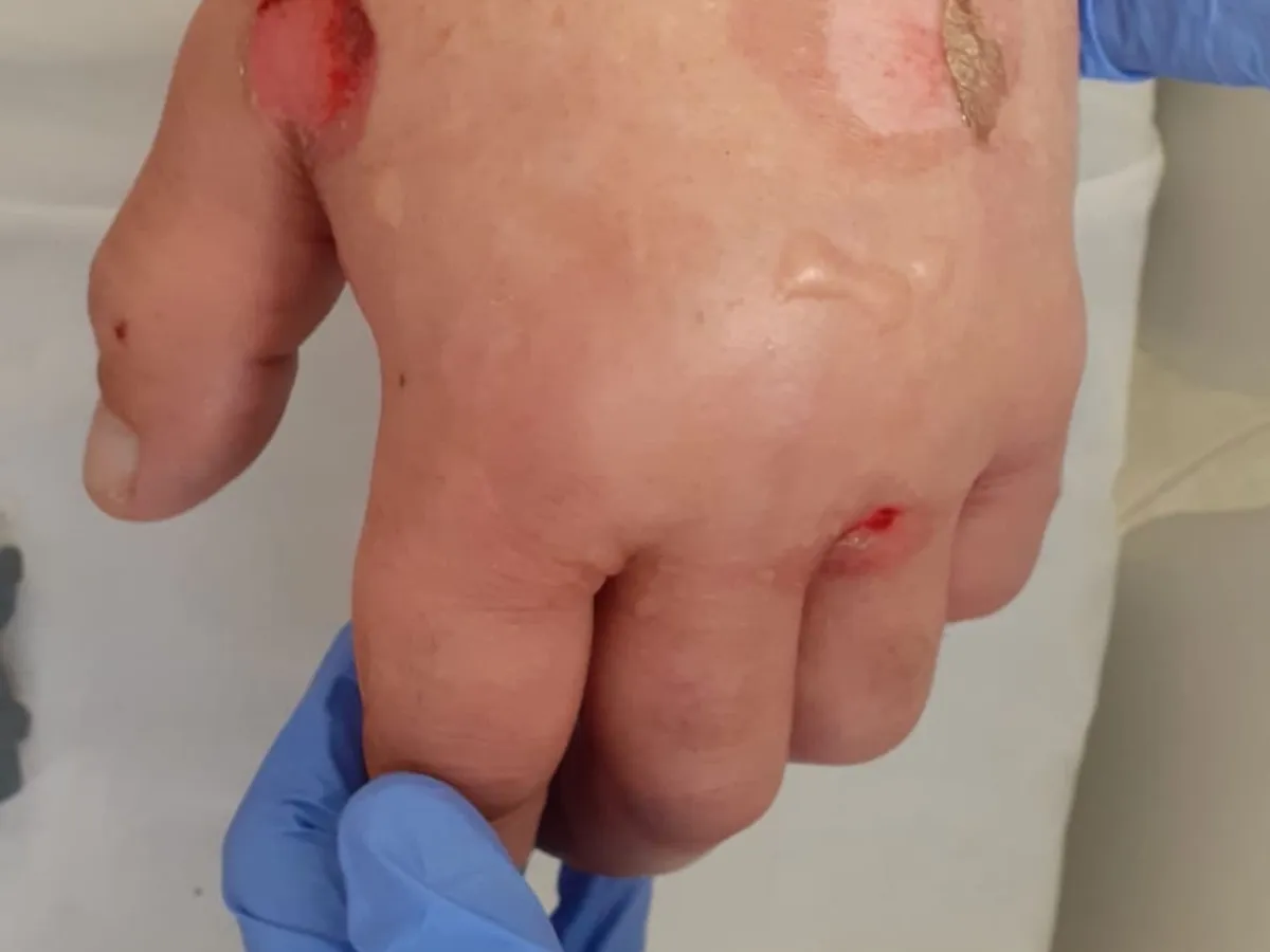 Un tratament absolut inuman este probat cu fotografii făcute în ATI, în care se văd mâinile cu pielea ruptă din cauza feșei cu care au fost legați.