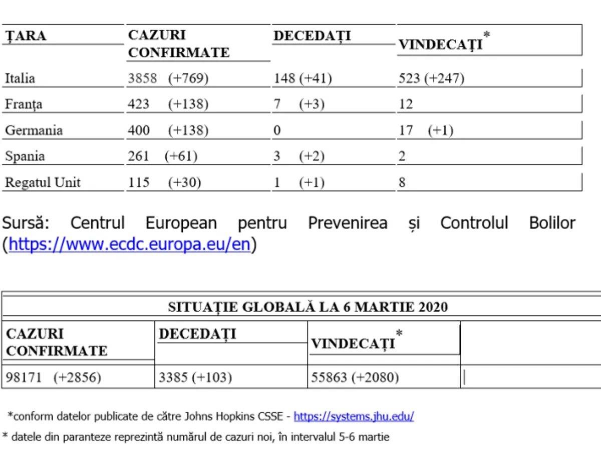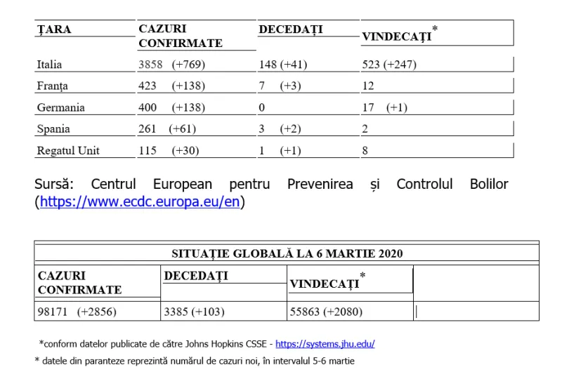Până la această dată au fost raportate 5.544 de cazuri de persoane infectate cu coronavirus în UE, Regatul Unit, Monaco, San Marino, Elveția, Andora.