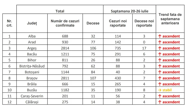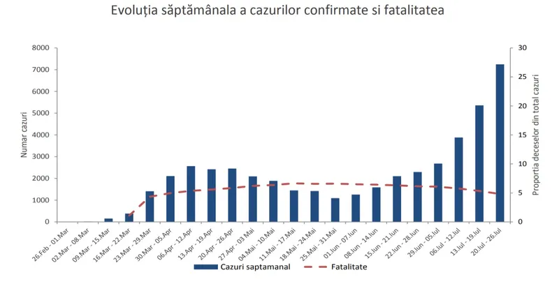 Cum au evoluat cazurile noi de coronavirus, în săptămâna 20-26 iulie. Sursa: INSP