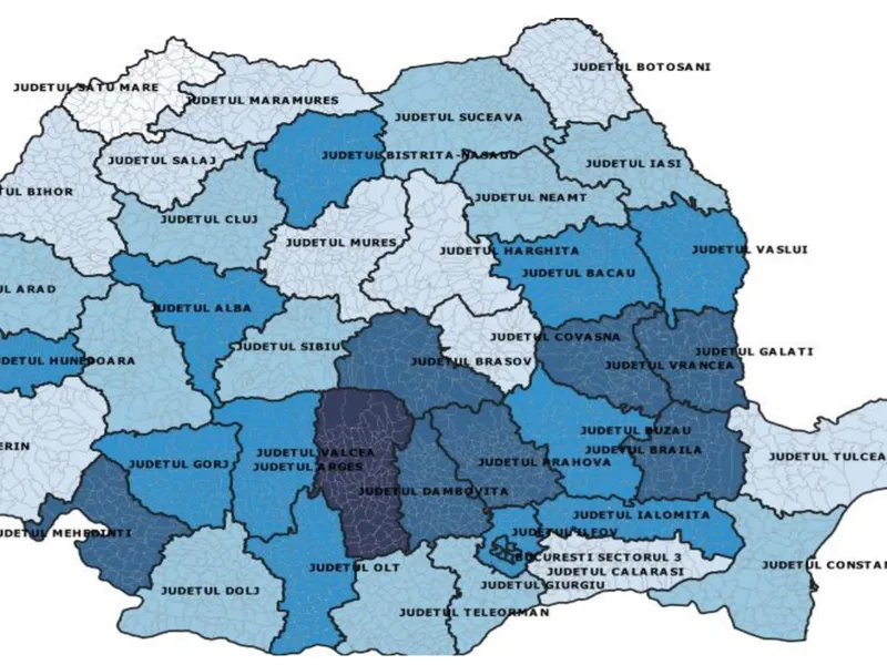 În judeţul Argeş se înregistrează o rată de incidenţă cumulată peste 200 de cazuri/ 100.000 locuitori, iar în alte 7 judeţe - peste 100/ 100.000 de locuitori.