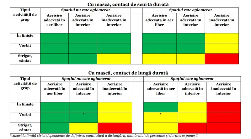 - În spațiile neaglomerate, cu aerisire inadecvată, când persoana asimptomatică poartă mască, dar strigă sau cântă – contact de lungă durată