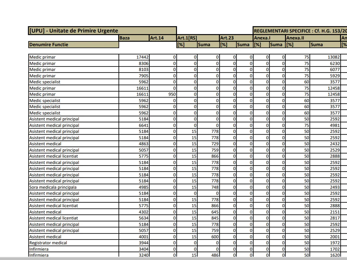Potrivit veniturilor de la Spitalul Universitar consultate de Newsweek România acestea nu sunt deloc mici. Un medic este încadrat la 17.000 lei la care se adaugă sporuri de 13.000 de lei. Un alt medic are 16.600 de lei la care se adaugă un spor de 12.400 lei.