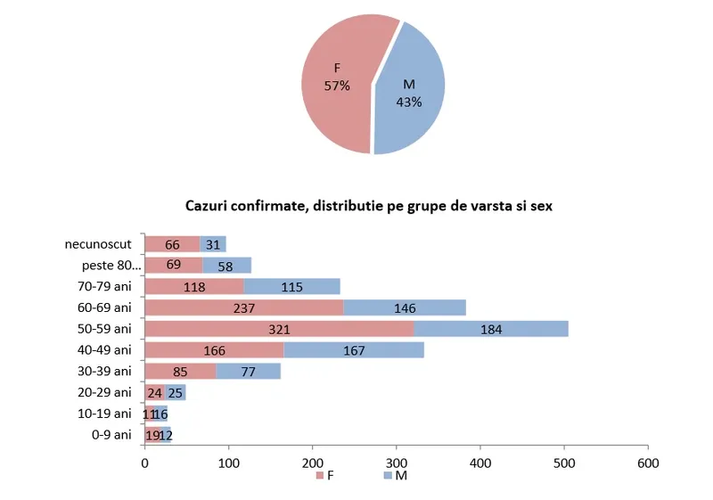 75 la sută dintre cazuri au fost confirmate la grupa de vârstă 40-79 de ani, iar vârsta medie a cazurilor în care s-a înregistrat decesul pacientului a fost de 66 de ani, toate cazurile având boli cronice asociate.