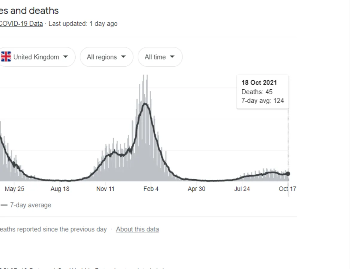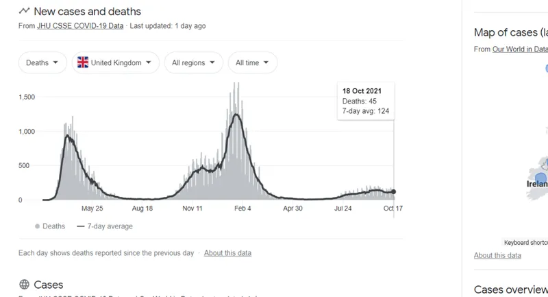 Cu toate acestea, numărul deceselor de COVID este scăzut. Ieri, s-au înregistrat 45 de decese (22 în Anglia, 20 în Țara Galilor, 3 în Irlanda de Nord și niciunul în Scoția). Numărul mediu al deceselor în ultima săptămână este de 124 în UK. Detalii AICI