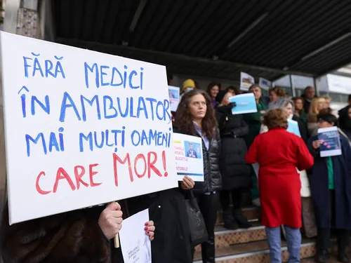 Medicii de familie și cei din ambulatorii protestează în București, în fața Casei Naţionale de Asigurări de Sănătate. Mulți și-au anulat programul de lucru și au ieșit în stradă.