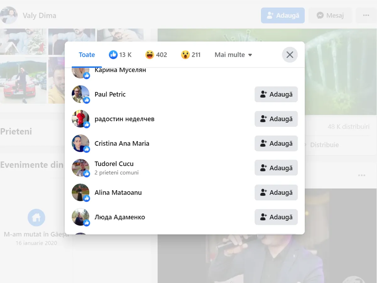 Misterul succesului brusc începe să se lămurească când analizezi conturile celor care au dat like. Majoritatea sunt ale unor persoane care nu cunosc limba română. Cu toate acestea apreciază și chiar râd la ceea ce scrie în respectivul text.