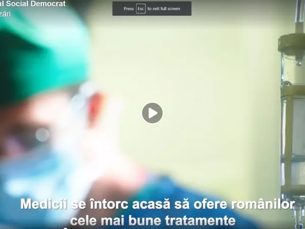 Într-un spital idilic cum nu găsiți la stat, un medic-senior le explică tinerilor rezidenți ce au de făcut. În josul filmului scrie: „medicii se întorc acasă ca să le ofere românilor cele mai bune tratamente pentru că salariile lor s-au dublat”. Realitatea este că această creștere a salarilor nu a reușit să oprească exodul doctorilor.