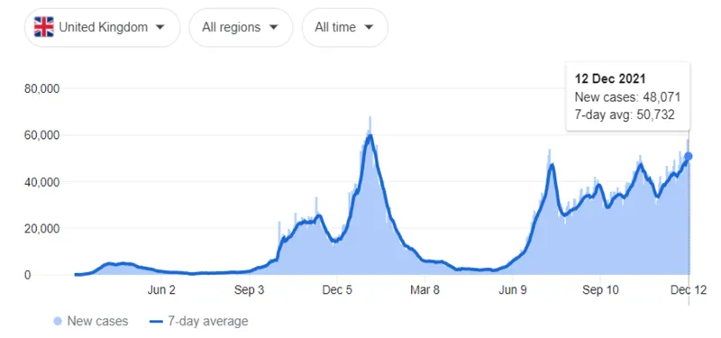 UK – număr decese (media ultimei săptămâni): 119. Număr infecții noi (media ultimei săptămâni): 50.732. Raport infectări/decese: 426. Procent vaccinați complet: 69%.